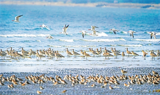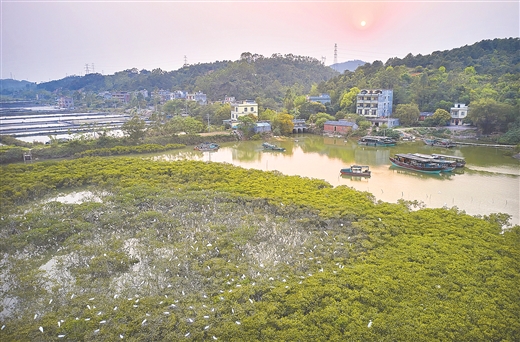 ①位于防城港市港口区企沙镇的山心沙岛,随处可见“万鸟齐飞”的壮观场面。本报记者 周 军/摄
