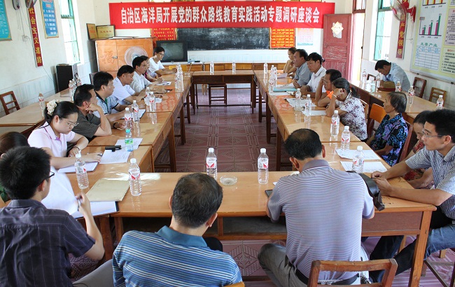 7月30日,自治区海洋局法规和海环处支部一行前往钦州市三娘湾村委开展党的群众路线教育实践活动专题调研座谈会。