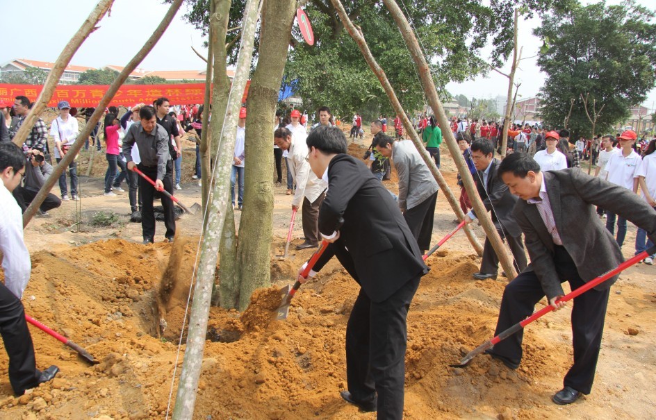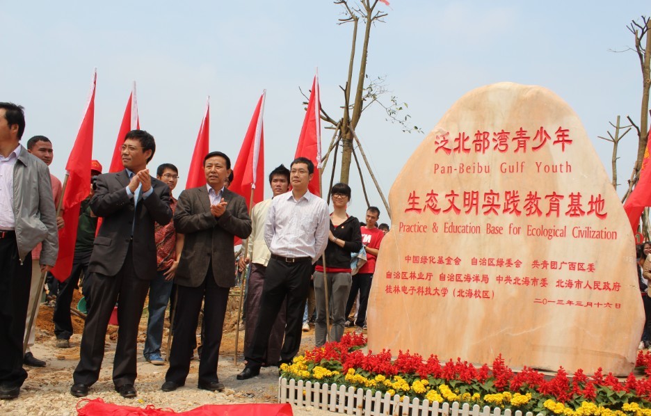 启动仪式上,与会的领导同东盟国家青年代表共同为“泛北部湾青少年生态实践教育基地”揭牌,随后并开展了植树活动。