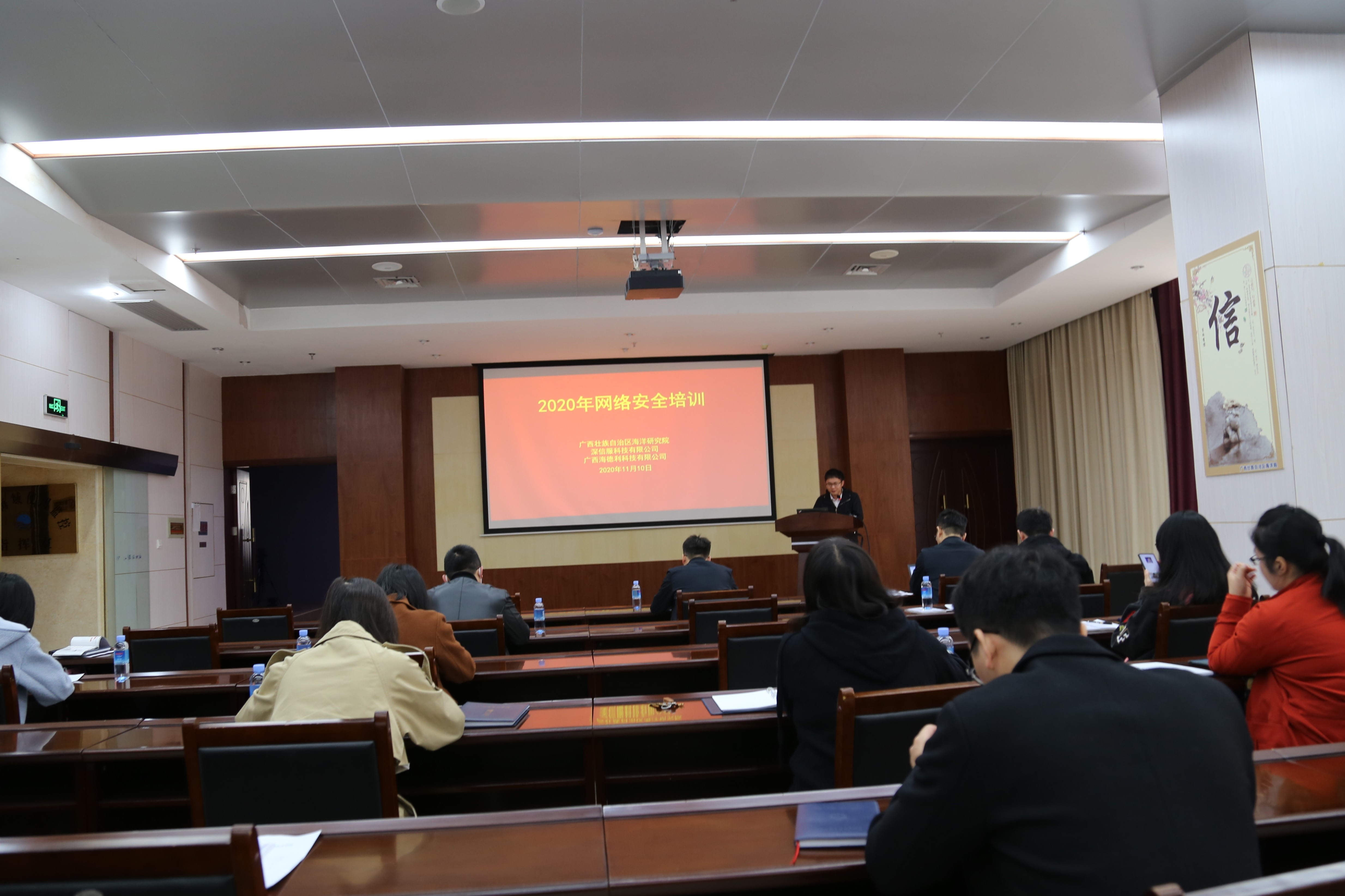 为深入贯彻落实习近平总书记关于网络安全工作的重要批示指示精神,进一步加强网络安全管理,提高网络安全防护水平,提升全体干部职工网络安全意识和防护技能,营造清朗的网络环境,2020年11月27日,广西海洋研究院联合深信服科技有限公司、广西海德利科技有限公司,共同举办“广西海洋研究院2020年网络安全培训”,研究院全体干部职工参加此次培训。
