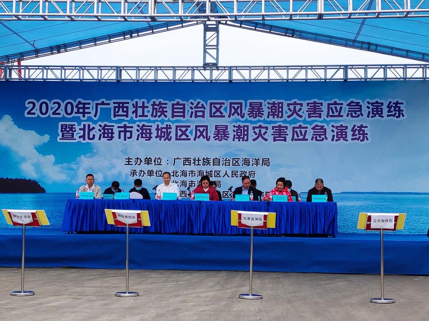 为全面检验《广西壮族自治区风暴潮海浪海啸灾害应急预案》《北海市风暴潮海浪海啸灾害应急预案》的可靠性和可操作性,提高我区对海洋灾害的应急处置能力,2020年11月3日上午在北海市海城区地角内港码头举行2020年广西壮族自治区风暴潮灾害应急演练暨北海市海城区风暴潮灾害应急演练,演练由自治区海洋局主办,海城区人民政府、北海市海洋局和自治区海洋研究院联合承办。