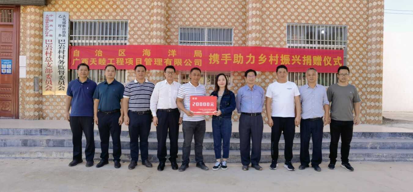 自治区海洋局还与爱心企业联合开展了“携手助力乡村振兴献爱心捐赠”活动。自治区海洋局党组成员、副局长刘斌、二级巡视员赵木林以及大化县委常委、副县长唐石山陪同调研。