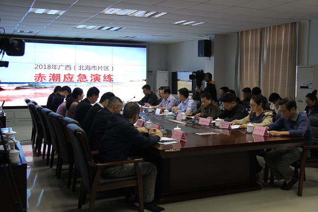 12月7日,2018年广西赤潮应急演练在北海市举行。演练的主题是“苦练基本功,共创平安城”。演练模拟“北海廉州湾附近海域发生约22平方公里的有毒米氏凯伦藻赤潮,现场海域出现鱼类、贝类等海洋生物死亡情况”为背景。对此,北海市赤潮防治工作领导小组启动有毒赤潮特别应急响应。