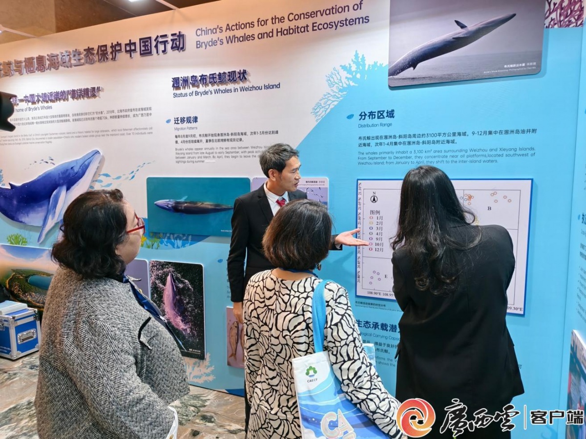 展示布氏鲸等海洋生物多样性和海洋生态环境保护监测与成果。广西海洋站供图