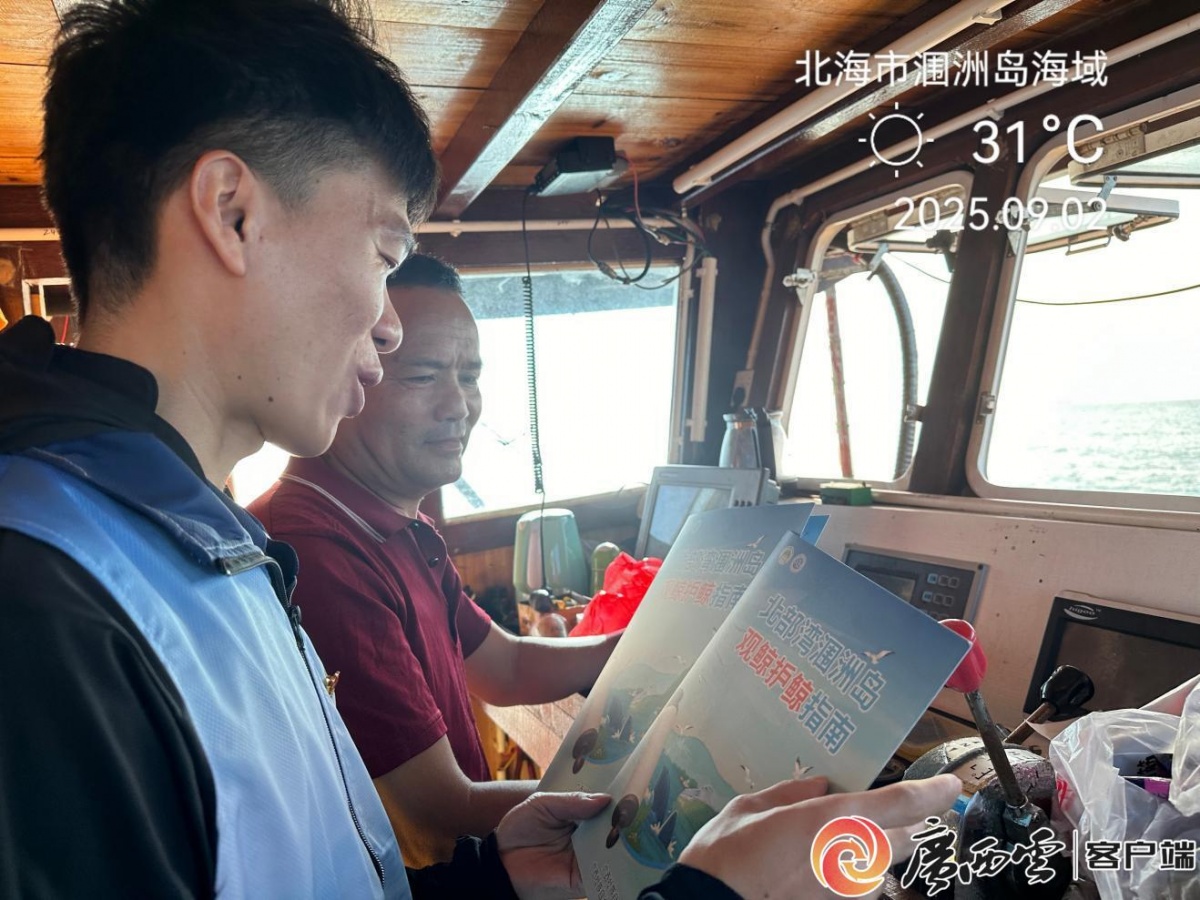 “我们通过向景区的游客、民宿商家、渔民等人群分发观鲸护鲸指南宣传折页,宣传普及布氏鲸保护知识,分众化引导,让公众观鲸与护鲸深度绑定,推动海洋生态保护理念从 ‘了解’走向 ‘践行’,共同守护布氏鲸赖以生存的蓝色家园。”广西海洋站生态研究室主任、高级工程师庞碧剑说道。