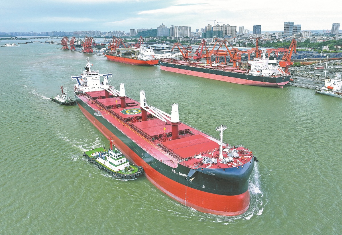 巨轮进出防城港码头。记者 周军 摄