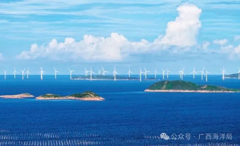 当前,我国海上风电产业规模居世界首位,为我国海洋经济发展不断开创新局面提供绿色动力。图为2025年7月6日,浙江省台州市三门湾海域,海上风电机组迎风旋转,源源不断输送绿色能源。 人民图片 林利军/摄