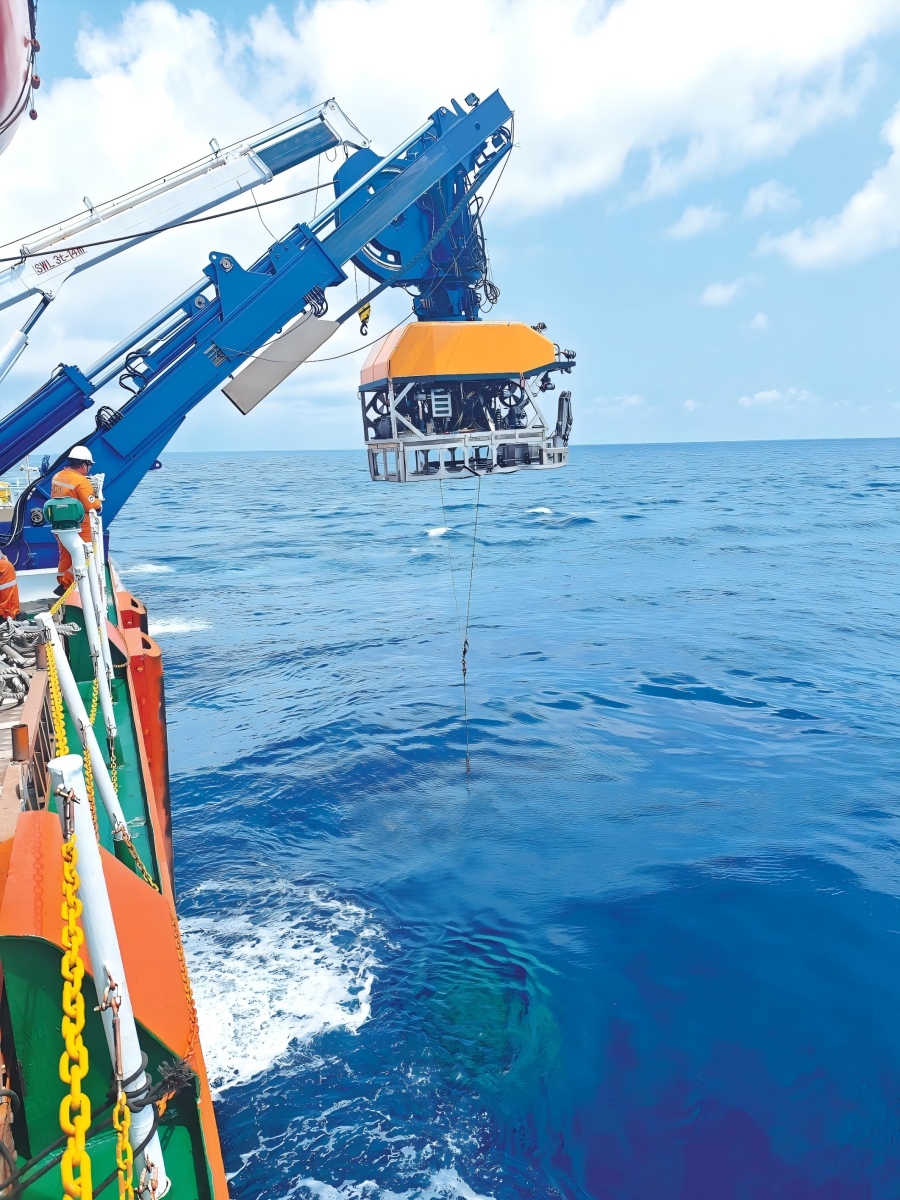 科考人员利用“海马”号无人遥控潜水器回收沉积物捕获器。广州海洋地质调查局供图
