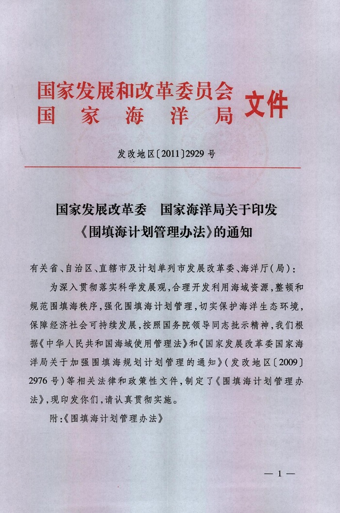 国家发展改革委 国家海洋局关于印发《围填海计划管理办法》的通知