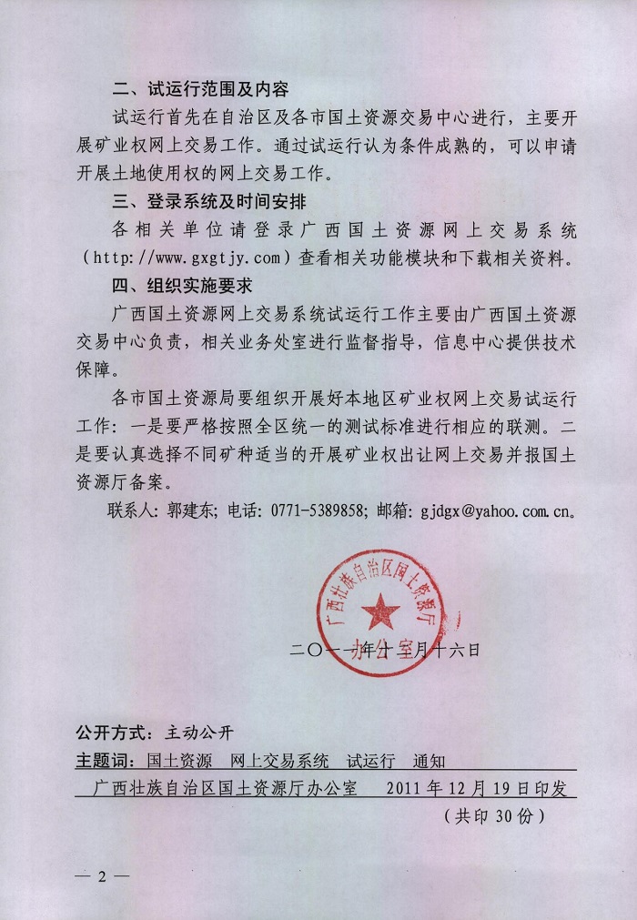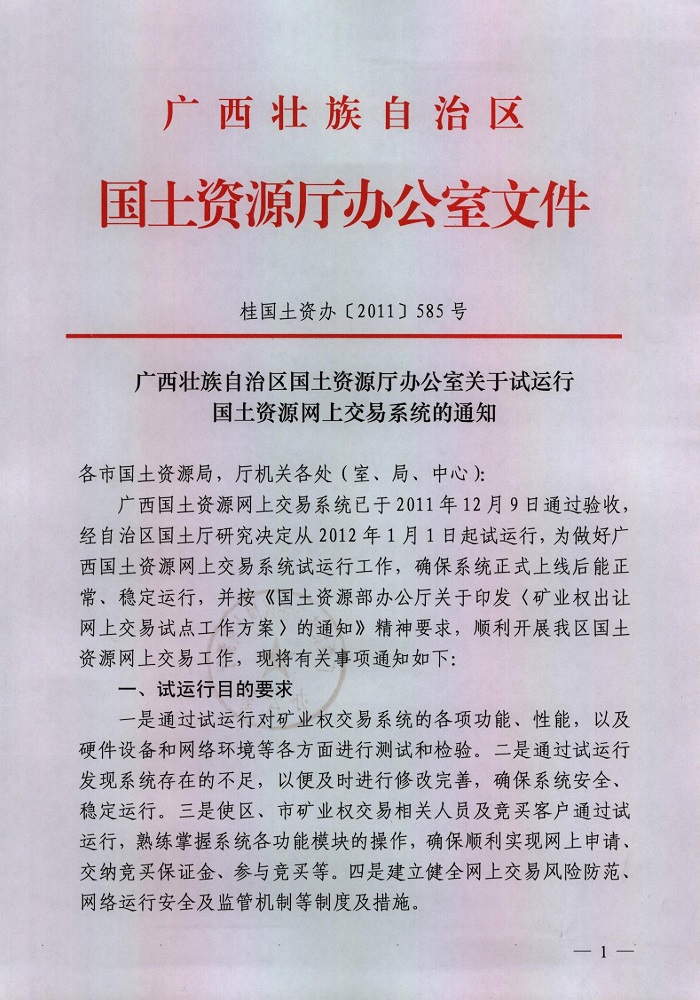 自治区国土厅办公室关于试运行国土资源网上交易系统的通知