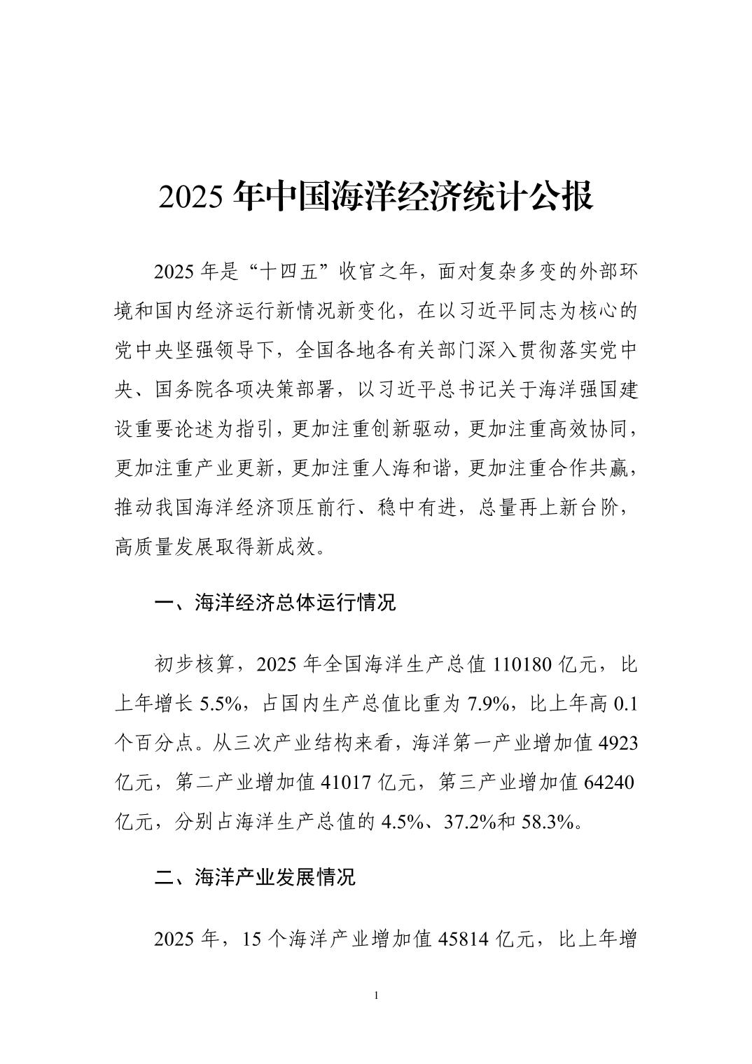 海洋经济稳中有进 高质量发展取得新成效 ——《2025年中国海洋经济统计公报》解读